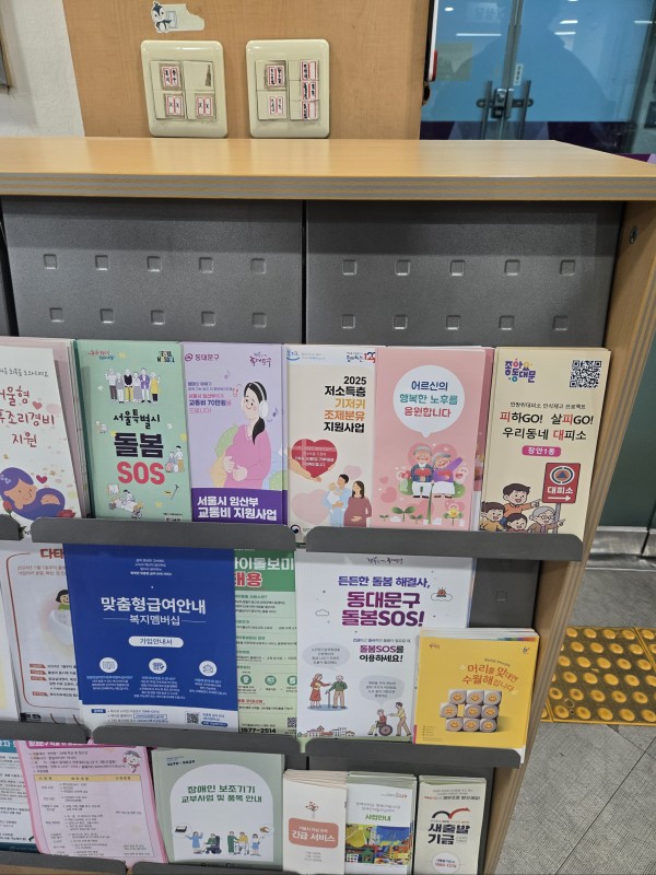 사각지대에 놓인 독거 어르신이 발생하지 않도록 관내 주민센터를 방문하여 기관 소식지를 비치하는 홍보활동을 진행하였습니다.