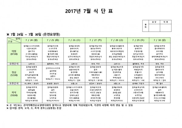 7월 넷째주 식단표 페이지 정보 작성자 은천노인복지회 작성일17-07-24 17:56 조회174,398회 댓글0건 관련링크 이전글 다음글 목록 답변 본문 7월 넷째주 식단표 이전글 다음글 목록 답변